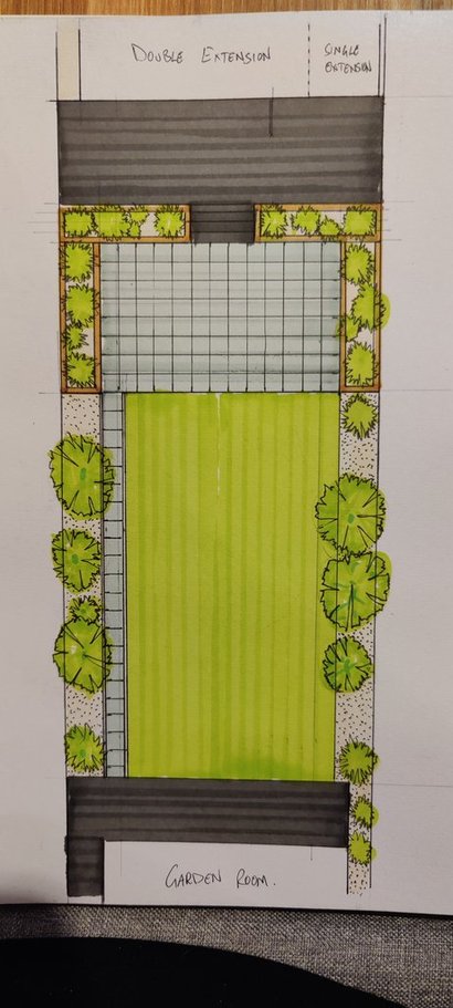 Following the successful completion of the rear double extension, our client envisioned a garden that would match the quality and functionality of their transformed home. TIMARK sat down with the client to collaboratively develop a comprehensive plan that reflected their vision for a space capable of accommodating large family gatherings and seamless entertaining.