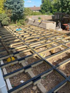 TIMARK collaborated with the client to design and construct a sophisticated multi-level garden featuring distinct zones for different purposes. The design cleverly steps down from the house, creating visual interest and maximizing usable space in a sloping garden.