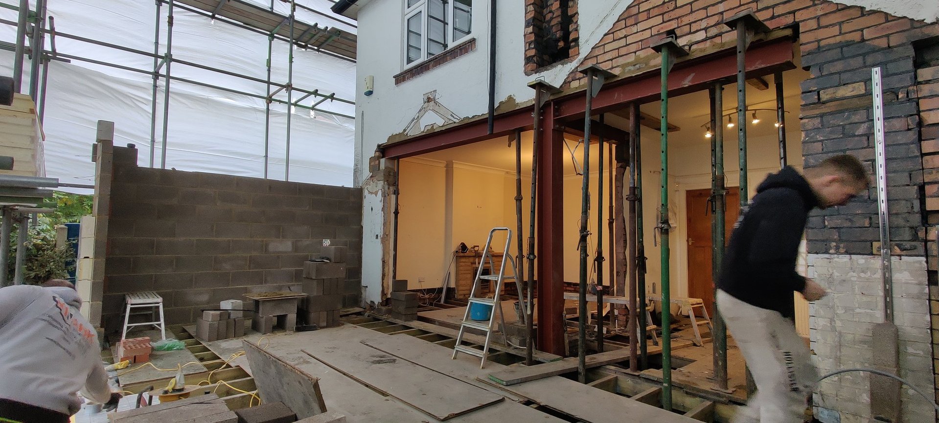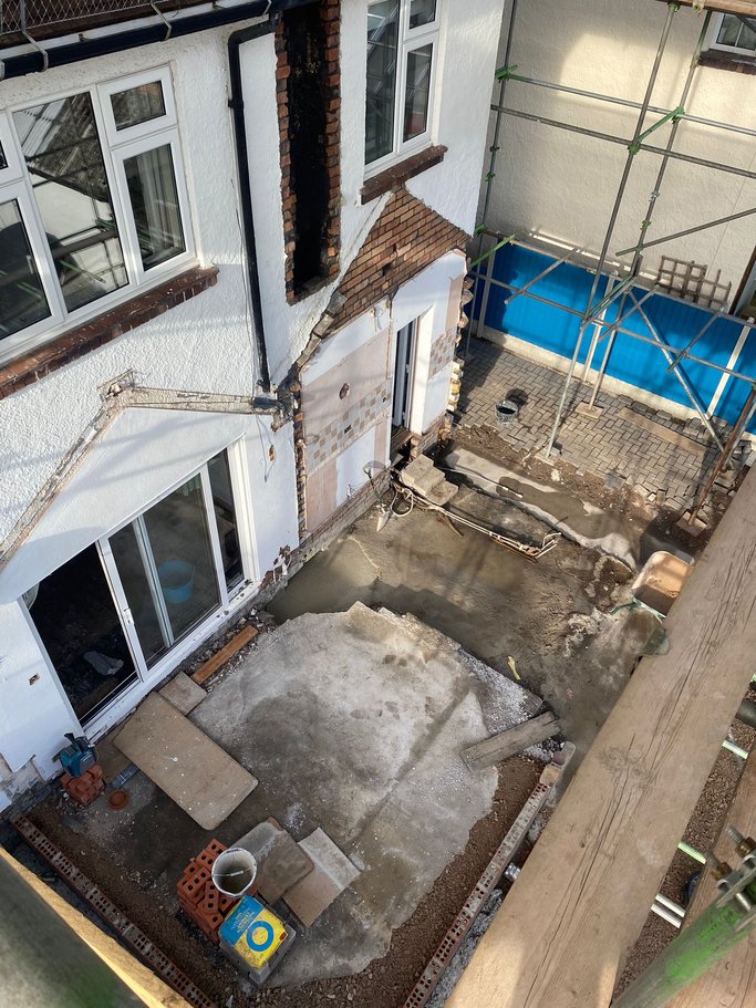 TIMARK Construction was contracted as specialist subcontractors to deliver comprehensive structural and groundworks for this substantial double rear extension project. Our scope encompassed the complete removal of an existing conservatory and rear extension, followed by the careful demolition of the rear chimney breast from external face to ground floor level.