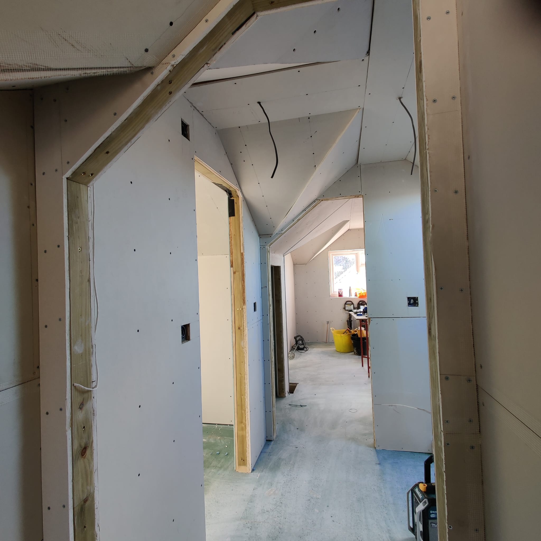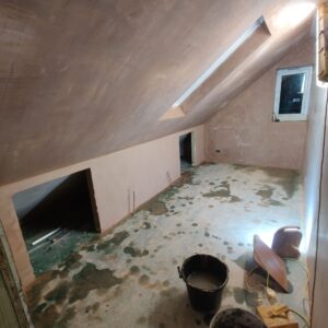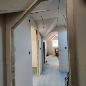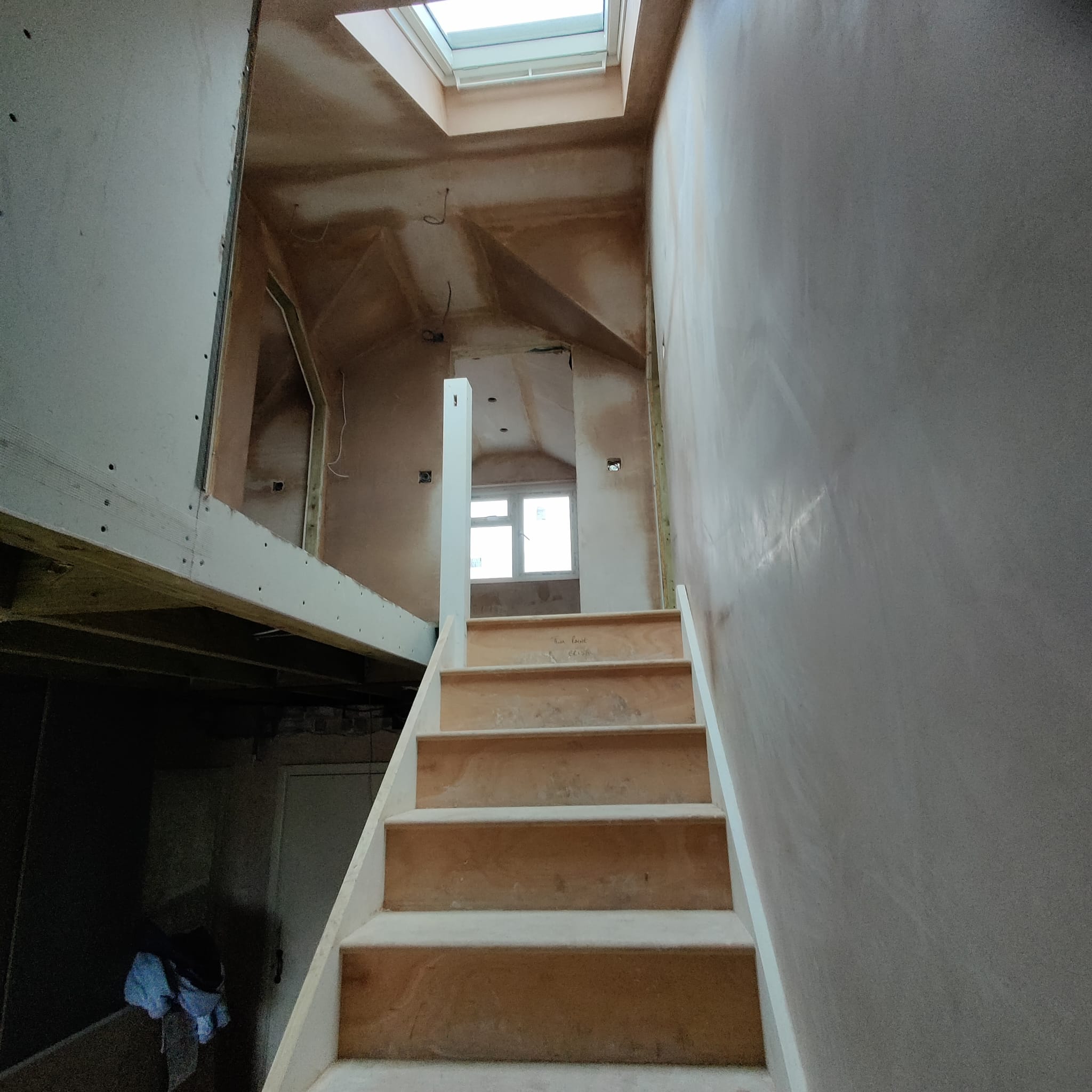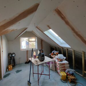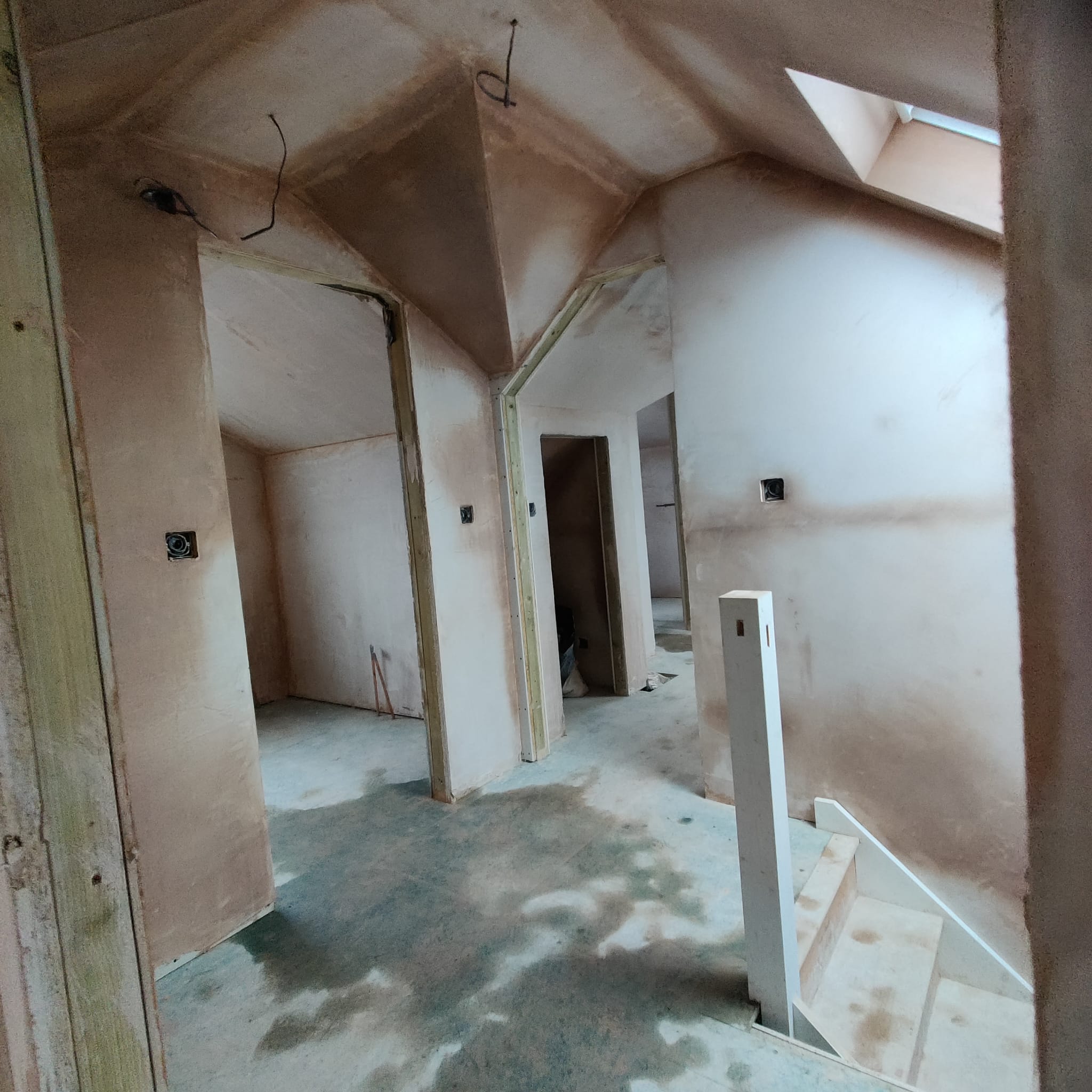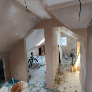 This phased renovation project began with completing an unfinished loft conversion before transforming the ground floor into a modern, energy-efficient living space. TIMARK’s first task was fully plastering the first floor, enabling our clients to move their belongings upstairs and establish temporary living quarters during the extensive ground floor works.