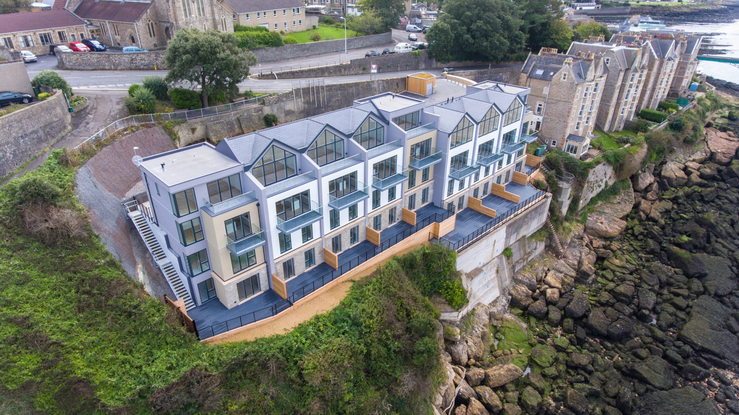 The project demanded expertise in complex engineering, including sophisticated retaining structures to manage the dramatic topography and comprehensive tanking systems to protect against water ingress in this coastal clifftop setting. The difficult terrain and restricted access presented daily logistical challenges requiring creative problem-solving.