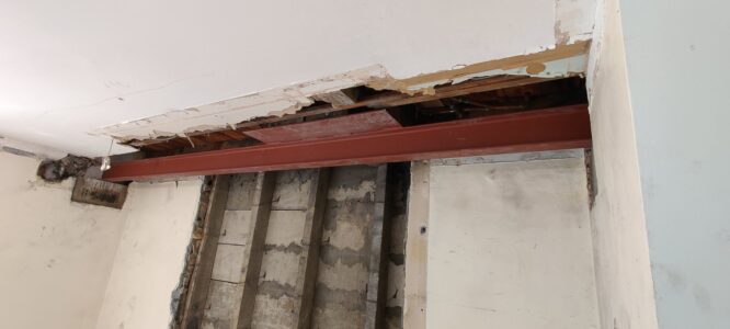 TIMARK undertook a comprehensive transformation, relocating the client’s small rear kitchen to the front of the property to create a spacious, modern kitchen-diner. The project began with removing an old chimney breast and installing supporting steelwork, opening up the space and creating the open-plan layout the client envisioned.