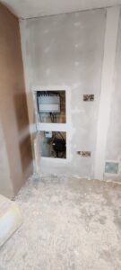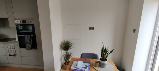Essential services were completely updated, including installing a new consumer unit and stop tap. Rather than leaving utilities exposed, we cleverly concealed them behind walls with secret access panels, maintaining clean lines and a tidy aesthetic throughout the space.