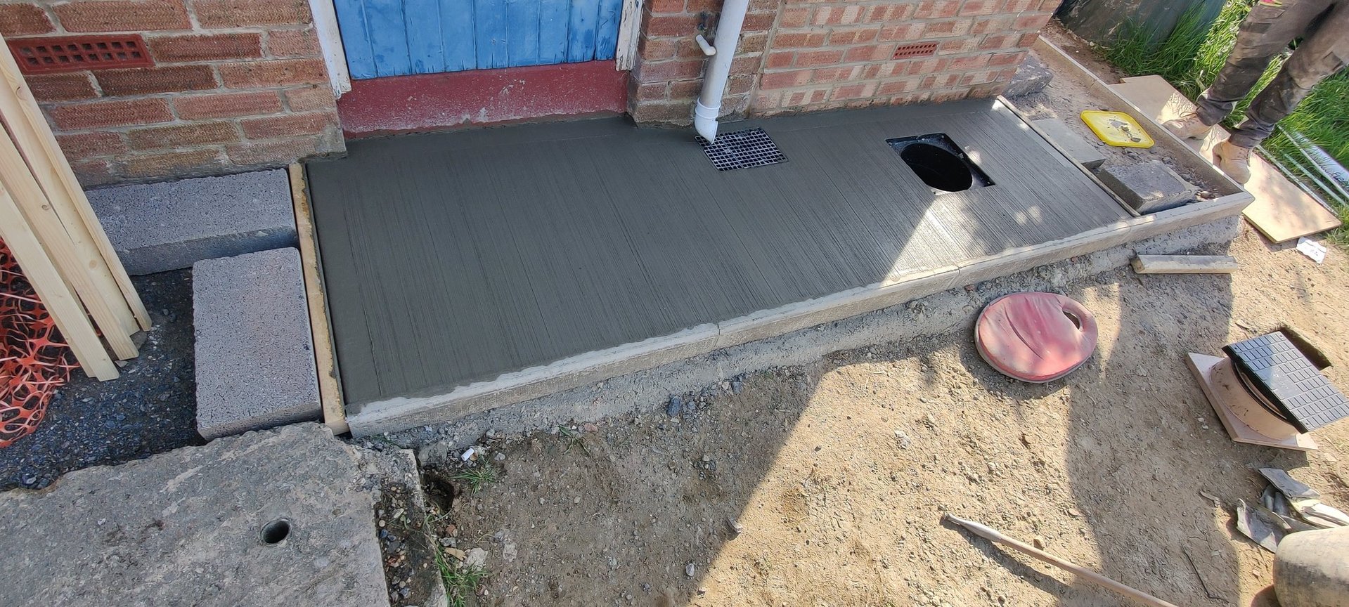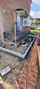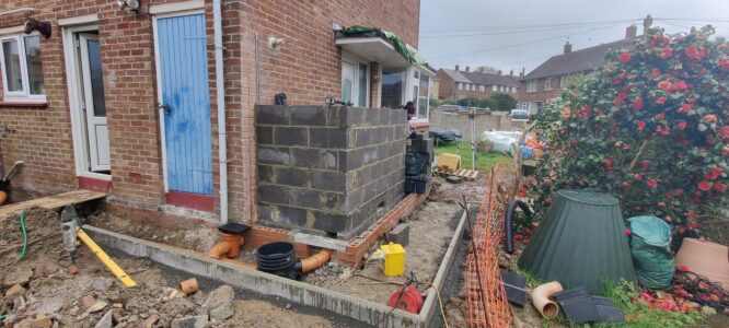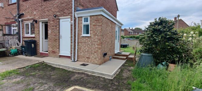 The construction utilized quality faced brickwork matching the existing property, topped with a modern insulated flat roof for energy efficiency. We installed a new concrete access footpath with steps, enhancing both accessibility and curb appeal.