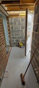 Technical challenges included re-routing the boiler flue to accommodate the new structure and installing new drainage infrastructure to provide the essential foul connection for the WC. The completed project not only improved the aesthetic appeal of the property’s entrance but crucially enhanced its functionality, providing the convenience of ground-floor facilities that modern family living demands.