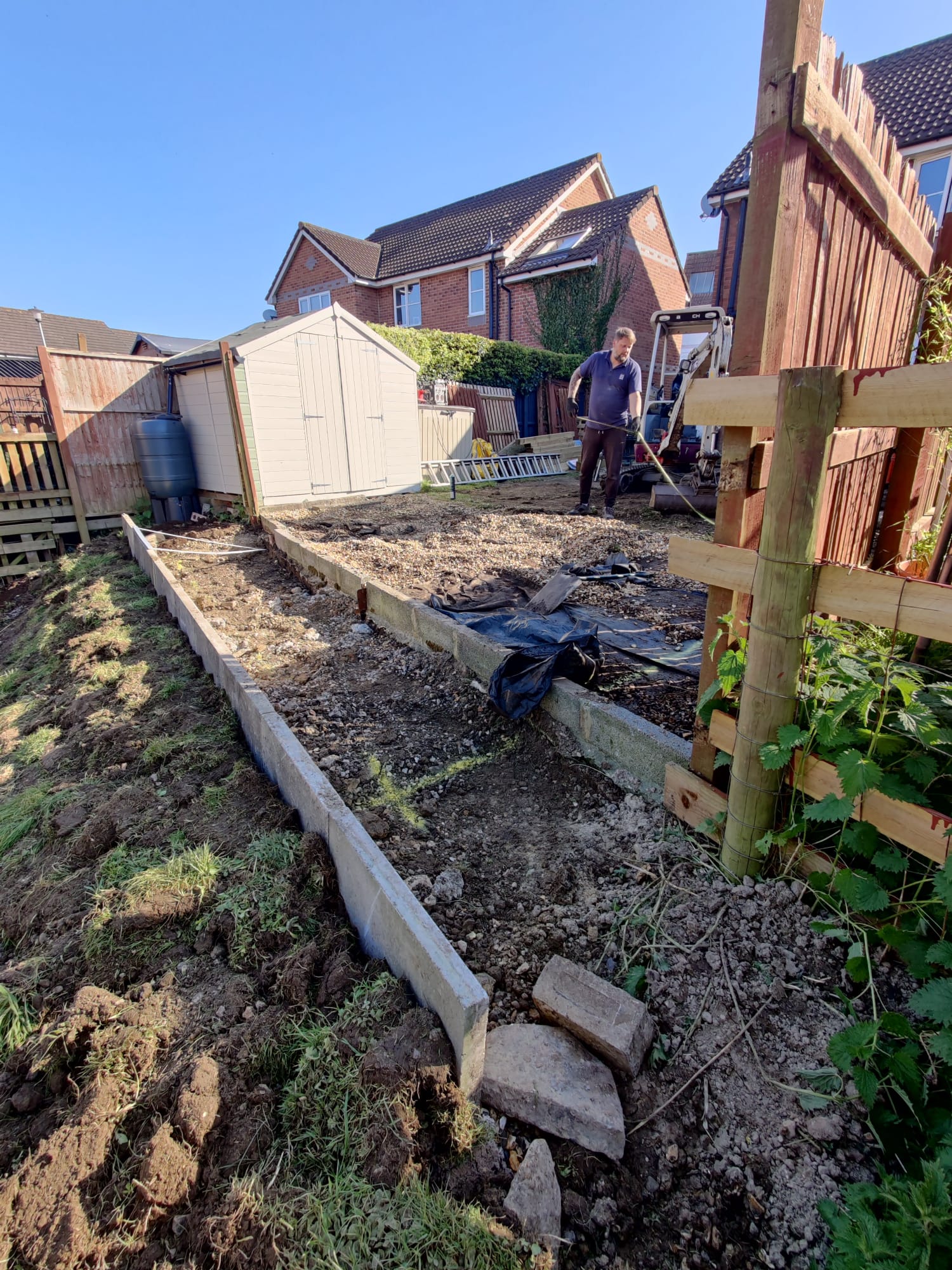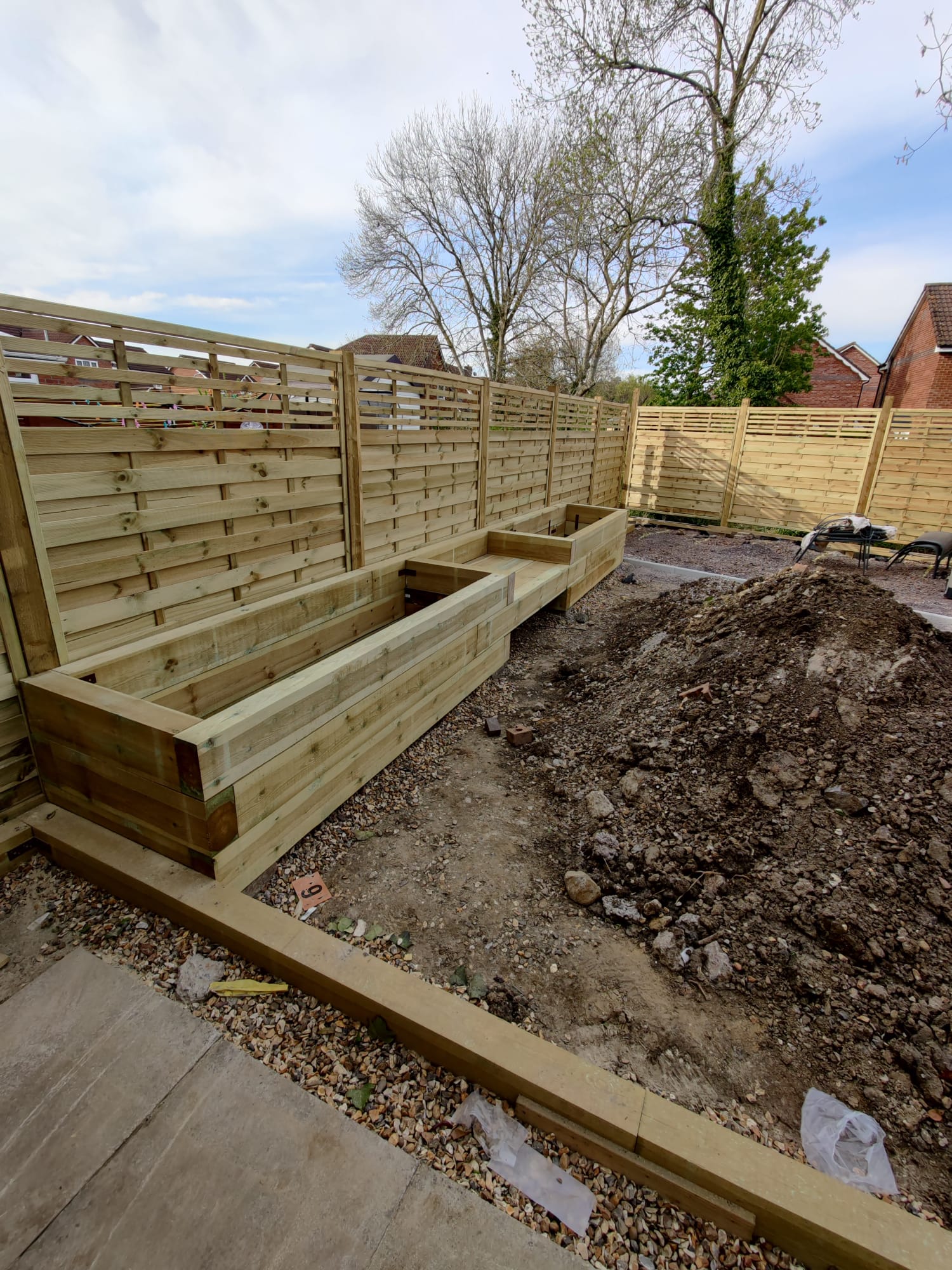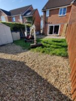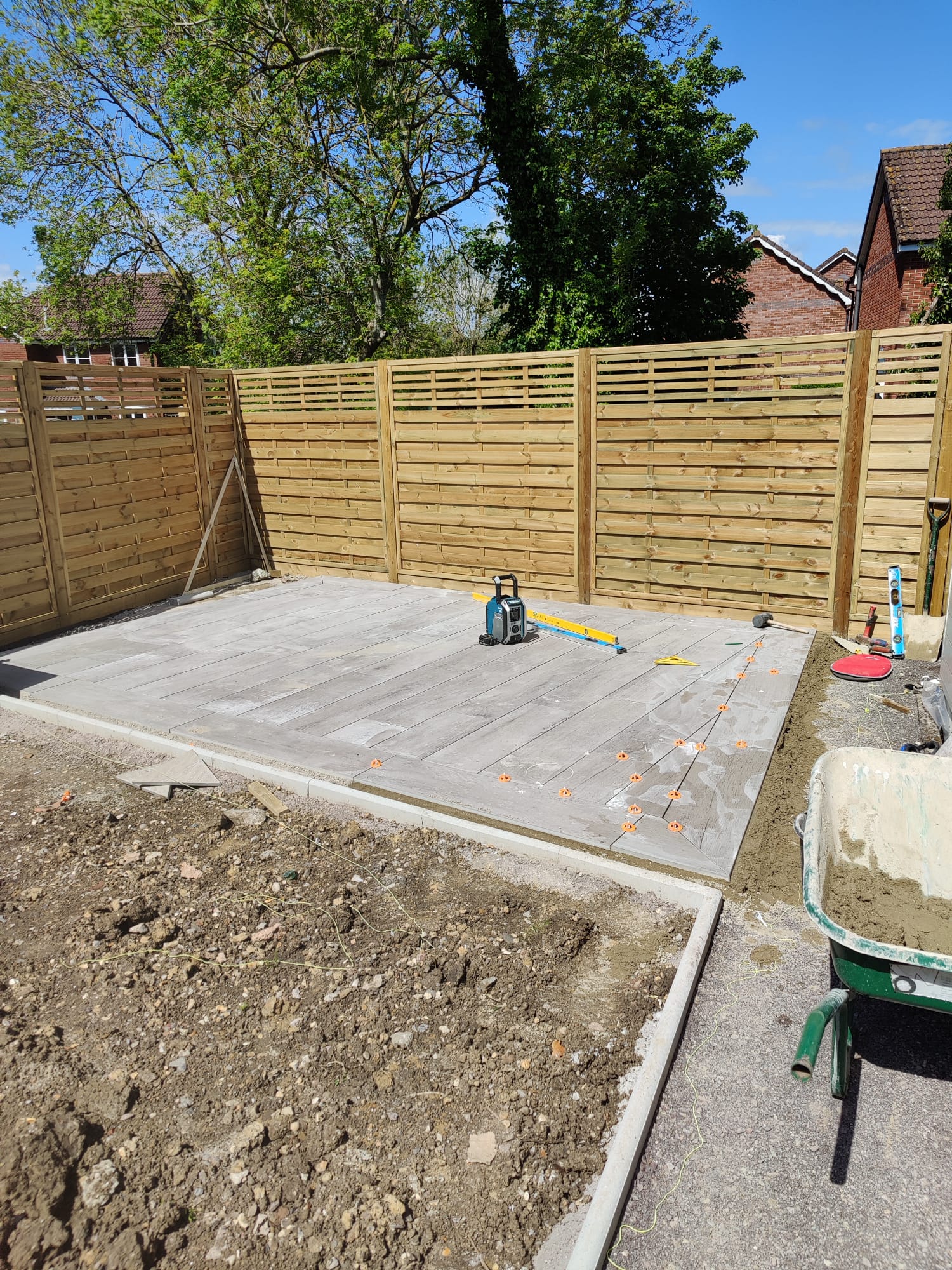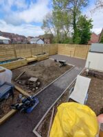 New perimeter fencing and an entrance gate completed the transformation, providing privacy and security whilst defining the garden’s renewed character. The dual-patio design ensures the family can follow the sun throughout the day, maximizing their enjoyment of the outdoor space from morning through sunset.