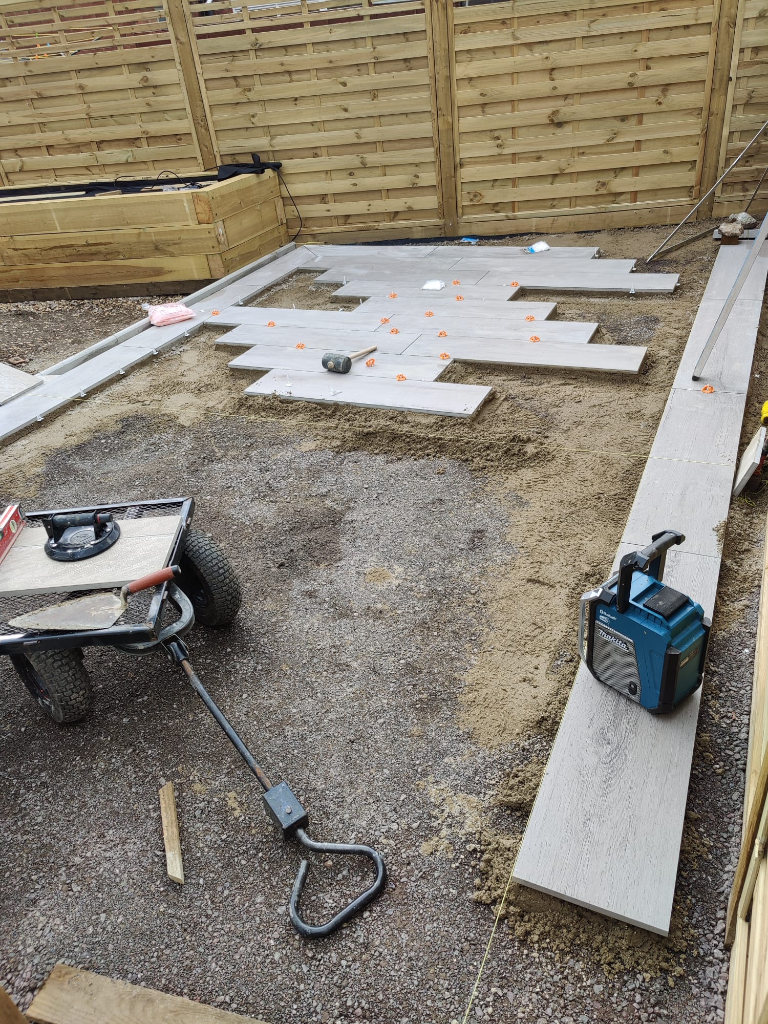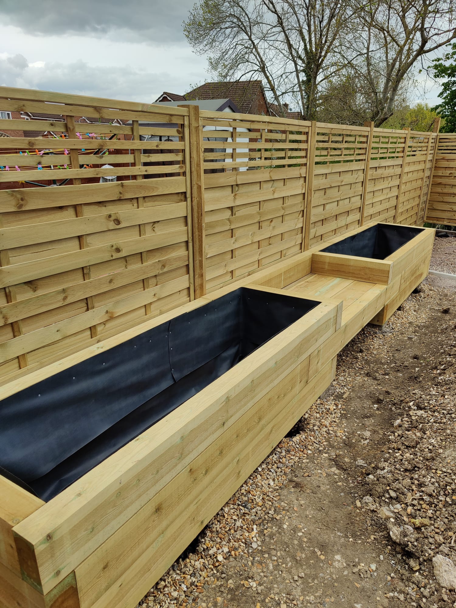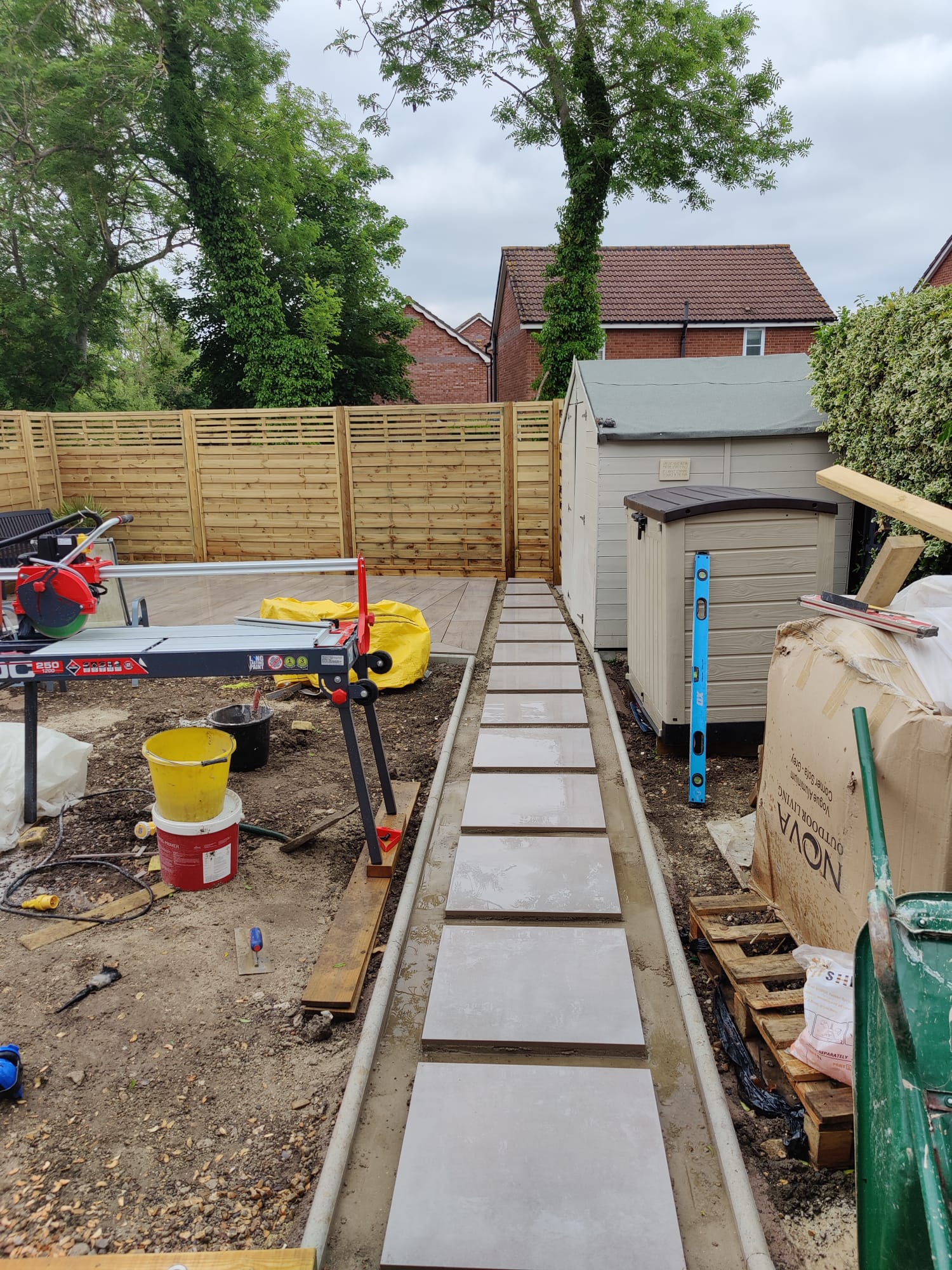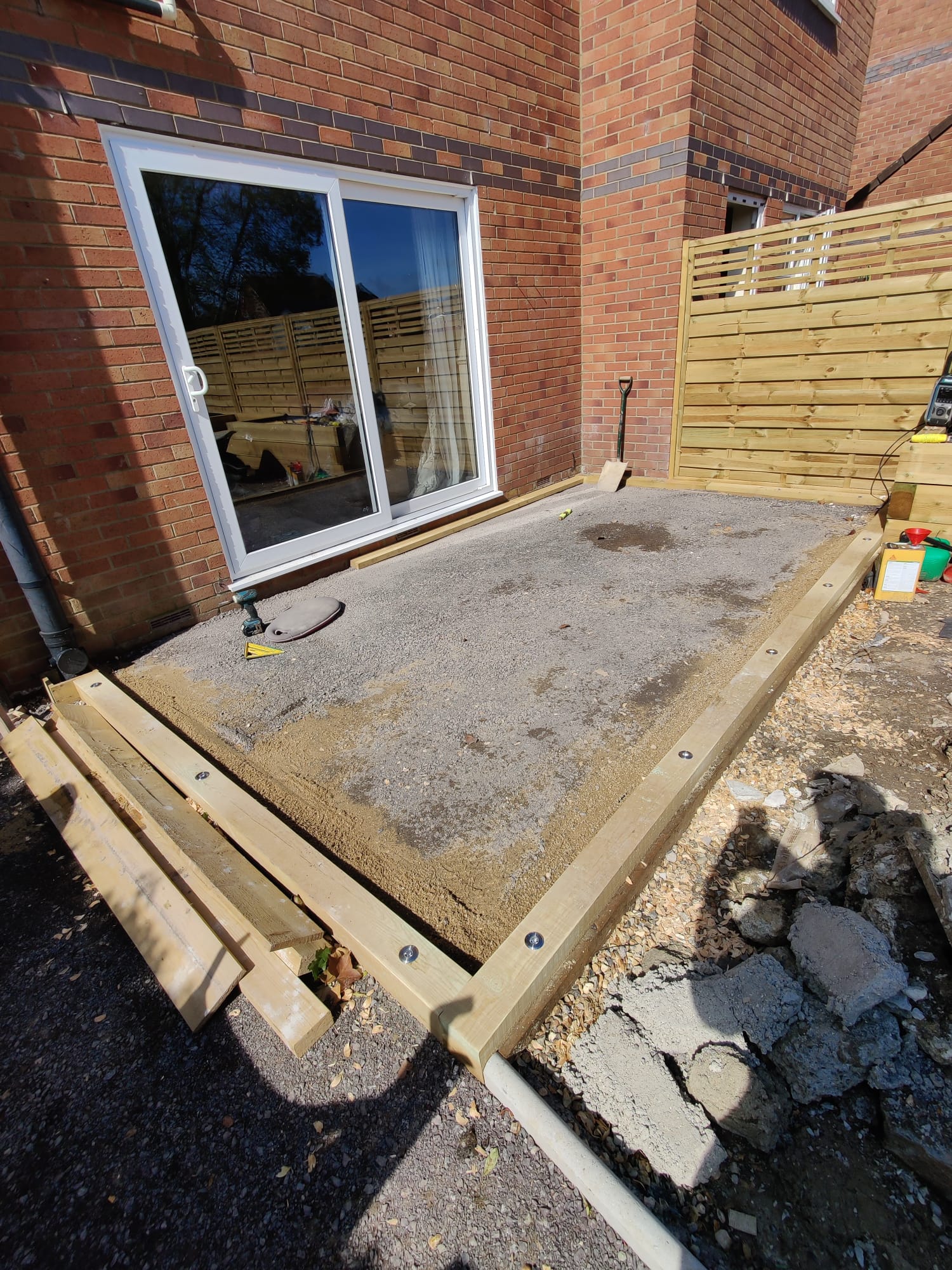 New perimeter fencing and an entrance gate completed the transformation, providing privacy and security whilst defining the garden’s renewed character. The dual-patio design ensures the family can follow the sun throughout the day, maximizing their enjoyment of the outdoor space from morning through sunset.